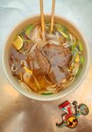 Вкусный Фо Бо, насыщенный бульон, много мяса и лапши. Порции большие. Удобно, что можно взять с собой. Брала холодный кофе с молоком, очень понравился. Отзывчивая женщина на кассе, все проверила перед выдачей, рассказала какие соусы дала и как их класть. Интересно рассказала о продукции лежащей на прилавке.