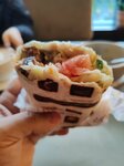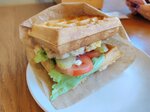Хорошая кофейня на четвёртом этаже! Борщ это скорее щи. Вкусные, наваристые, но щи. Шаверма разваливается и с капустой. Говядина великолепна. Лаваш поджарен в вафельнице. Вафля-бургер великолепен. Куриная котлета на отлично! Лучшее из заказанного) Кофе обычный. В капучино добавили чуть больше лавандового сиропа, чем следовало. Среди окрестных заведений, наверное, лучшее место.