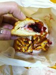 Зашли в пекарню по рекомендации знакомых. Взяли на вынос три сладких пирога. Из положительного-начинка: свежие, натуральные ягоды. Очень вкусная малиновая начинка с мягким сыром.НО... Продавец сказал, что тесто слоеное, это не так. Непозволительно толстый слой дрожжевого сдобного теста. Все эти толстые корки выбросили! Это при цене 1400 за кг!!! К тому же низ оказался подгоревшим. Так что вкусная начинка не спасла положение.