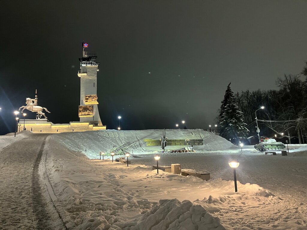 Великий Новгород Екатерининская горка С Монументом Победы. Очень интересная и примечательная возвышенность. Когда выходишь из Кремля, с права в дали, особенно вечером, открывается интересный вид. У кого хорошее зрение, смогу разглядеть Монумент Победы. Для остальных нужно будет подойти ближе. Три дня, которые мы с женой посвятили изучению и наслаждению Великим Новгородом, не хватило, для полного впечатления. Но что то мы успели. Уже на третий день, выходя из вечернего Кремля, Любимая решилась таки протий до памятника. На тот момент это был просто памятник в дали. Но приблизившись, мы увидели что это целая территория. Достаточно большая территория с достопримечательностями. Немного раскрою интригу… Проходя вдоль стены Кремля, по основной дорожке, упираешься в саму Екатерининскую горку. Эта треугольная насыпь, на вершине которой стоит Монумент Победы. А в заводи самой насыпи, расположился мемориал советским войнам освободителям. Там есть танк, пушки, скамейки для скорби и памяти. Вечером красивая подсветка местности. Для любителей и профессионалов конечно тоже, есть вариант отличных кадров. Не удивлюсь, если молодожёны используют это место для своих свадебных фотографий. Как красивое место и отдать дань памяти нашим защитникам. Наверняка летом здесь своя особая красота. С самой горки-насыпи хорошо видна могучая река Волхов. Возможно в старину здесь был наблюдательный форт. Очень уж местность удобная и стратегически полезная. Зима 🥶, холод ❄️. Снег под ногами хрустит. Вечер. Огоньки, подсветки, переливы снега. Всё создаёт новогоднюю атмосферу. Не знаю как коренные жители, но Мы!! лично с Любимой, Вас приглашаем посетить эти наикрасивейшие места. Если уж не сами, так отправьте детей с бабушками и дедушками. Пускай старое поколение передаёт опыт молодому. Да и фотки 🤳 тут просто шикарные. Ладно, словами всего не передашь. Приезжайте и наслаждайтесь. Всем добра 💕.