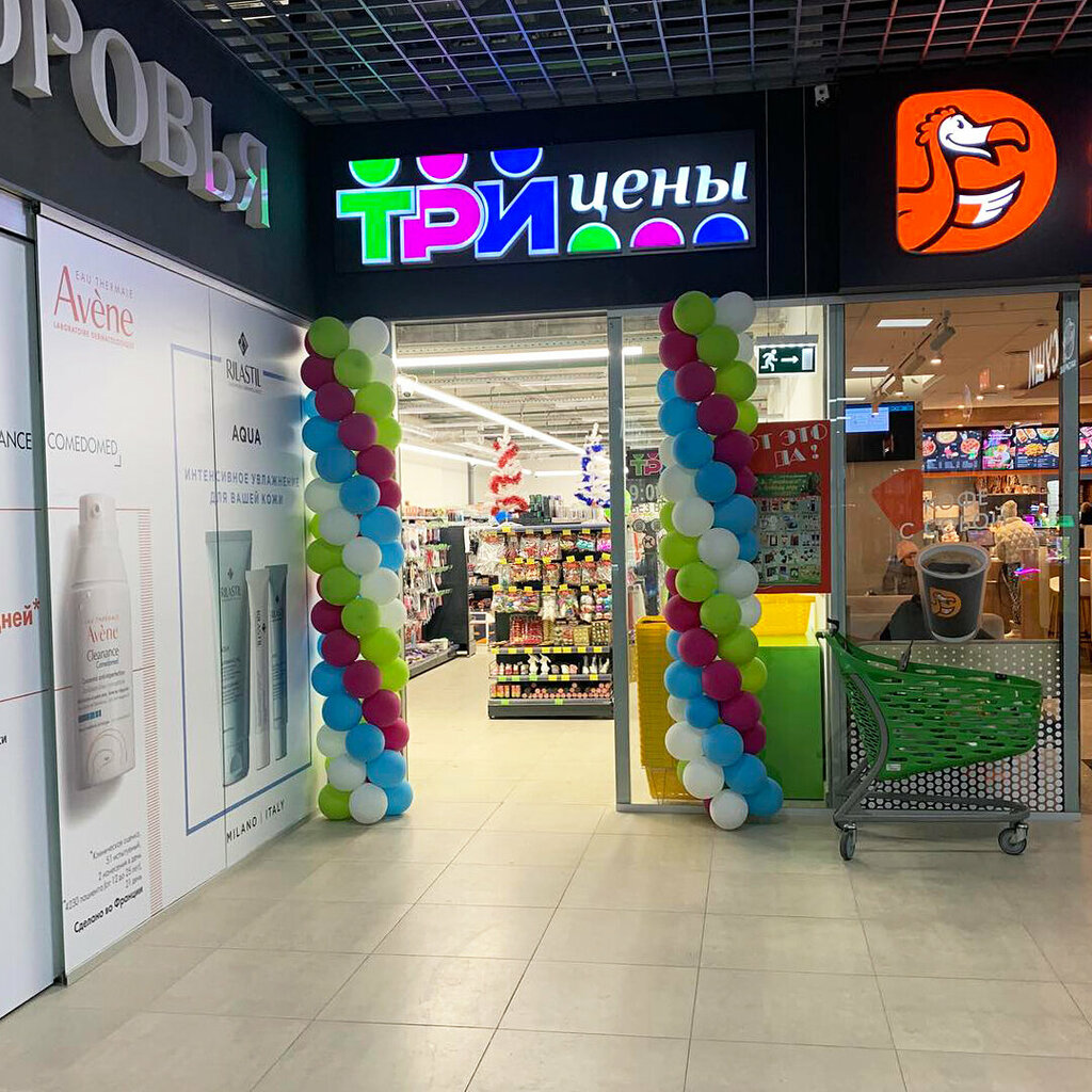 "three prices" is a familiar cheap store. You can find a lot of useful things both for yourself and for your home there. The staff is not annoying. I can't say anything bad.