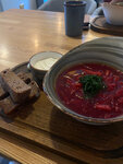 Борщ с гренками из ржаного хлеба