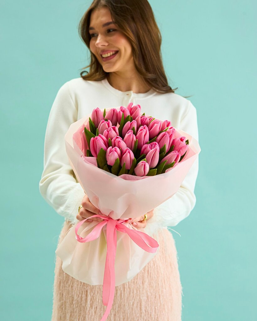 Состав букета: Диантусы в белом и розовом цвете - 15 Обращаем ваше внимание на то, что цветы имеют свойство отличаться и состав букета может быть немного изменен, но концепция и цветовая гамма сохранятся.