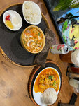 Были с парнем вечером в будний день, сначала думала, что не сможем сесть и покушать, но пока ждали заказ места освободились и мы смогли спокойно попробовать блюда) фотки к сожалению я не сделала, но блюда выглядели очень аппетитно и вкусно, а самое главное большими, можно любое блюдо брать и оно будет огромным) брала спринг-роллы, горячий салат, булочку на пару и коктейль с манго (не помню точного названия, но он явно был один из лучших, что я пробовала) и брали карри, понравилось, очень вкусно) Цены конечно хотелось бы поменьше, но в 2024 что имеем, то имеем, обслуживание понравилось!