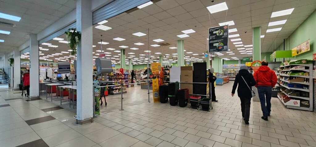 ( Про пятёрочку слева от входа с кассами самообслуживания) Так себе магазин, странные охраники и продавцы, обозленные кражами. Очень неприятно, когда за тобой ходить начинают и рассматривать. Бывает, что на кассе самообслуживания никого нет, хотя персонал есть в зале, на просьбы подойти и помочь не всегда реагируют.