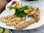 We found this fish restaurant on the Internet before the trip. Guo's review said that this inexpensive restaurant is frequented by locals and seafood is well prepared in it. And so it was. A small restaurant. There is a Russian-speaking waiter who helped us navigate the menu. Prices for November 25 are on average 400- 500 lira per serving. The portions are normal. We took one different one. I had enough for dinner. Tea was given for free. Payment in cash or by card. We liked this place.