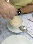 A place where locals eat. It's not a noticeable sign, but it's definitely worth a visit. The waiter spoke to us in Russian. The menu is ordinary, but the waiter can show you photos of dishes and suggest a choice. The fish soup is delicious. We ordered rock bass - tender, not overcooked, cooked just perfectly. They give bread and spread before meals and water for free. And at the end they treat you to tea and dessert. I want to return to this place!