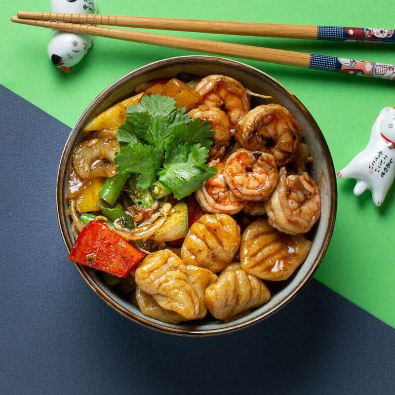 Лапша с курицей в кисло-сладком с ананас