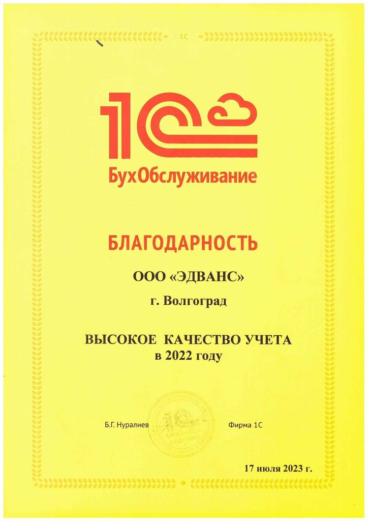 С компанией "Эдванс" мы работаем с 2021 года. Благодаря клиентоориентированному подходу руководителя компании Эдванс - Рубцовой Наталии Сергеевны и всех ее коллег, у нас сложились тёплые и продуктивные взаимоотношения. Возникло ощущение единой команды, хотя сотрудничество идет на условиях аутсорсинга бухгалтерских услуг! Наталия Сергеевна и ее коллеги всегда на связи, всегда готовы дать консультацию по возникающим вопросам, в случае необходимости идут навстречу. Наталия Сергеевна постоянно работает в направлении максимальной автоматизации обработки первичных документов, работы с маркетплейсами - что позволяет минимизировать затраты на этом участке учета. В таких условиях легко и приятно работать! Выражаем свою благодарность руководителю компании "Эдванс" - Рубцовой Наталье Сергеевне и всему ее коллективу за успешную и плодотворную совместную работу!