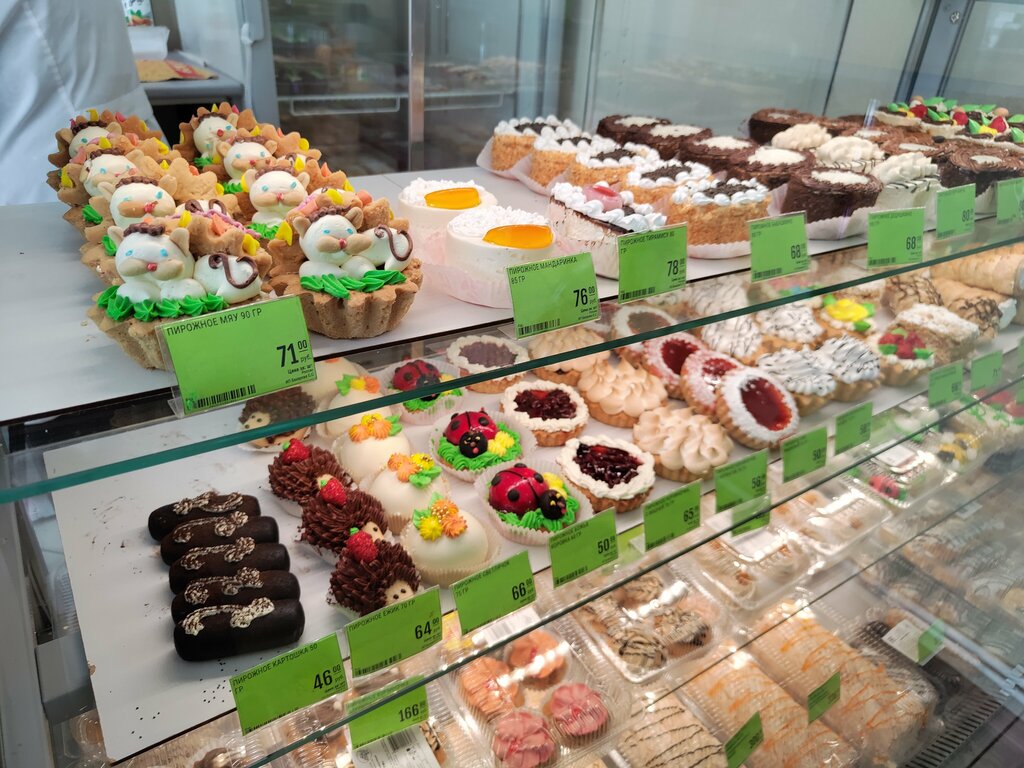 Пирожные и торты вкусные. Но цена не оправдана растёт. С каждым разом всё выше и выше. За 100 рублей уже ничего не купишь. Один раз продукция была испорчена . Заметила, когда вышла из магазина, но деньги вернули.