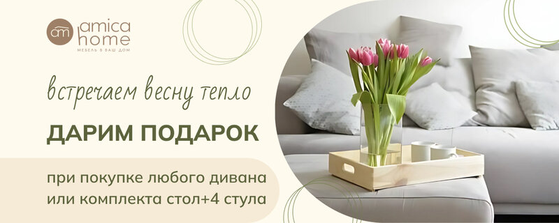 Весна — время обновлений! 🌸 И мы всей командой салонов мебели «Amica Home» спешим помочь сделать ваш дом уютнее. А чтобы покупки были еще п...