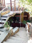 Зашли случайно когда возвращались из массандровского дворца. Приятно удивились вкусному обеду, антуражному виду, уютные столики под тенью деревьев. Борщ и окрошка, жареный перепел и сырники с кизиловым вареньем! Выше всяких похвал. Кофе не хуже чем пили в Армении. А Боцман это тигровый очень добродушный стаффорд который лежал под нашим столиком и ждал терпеливо перепелиных косточек. Цены тоже оказались приятными. Ещё раз спасибо хозяйке. РЕКОМЕНДУЕМ!!!!