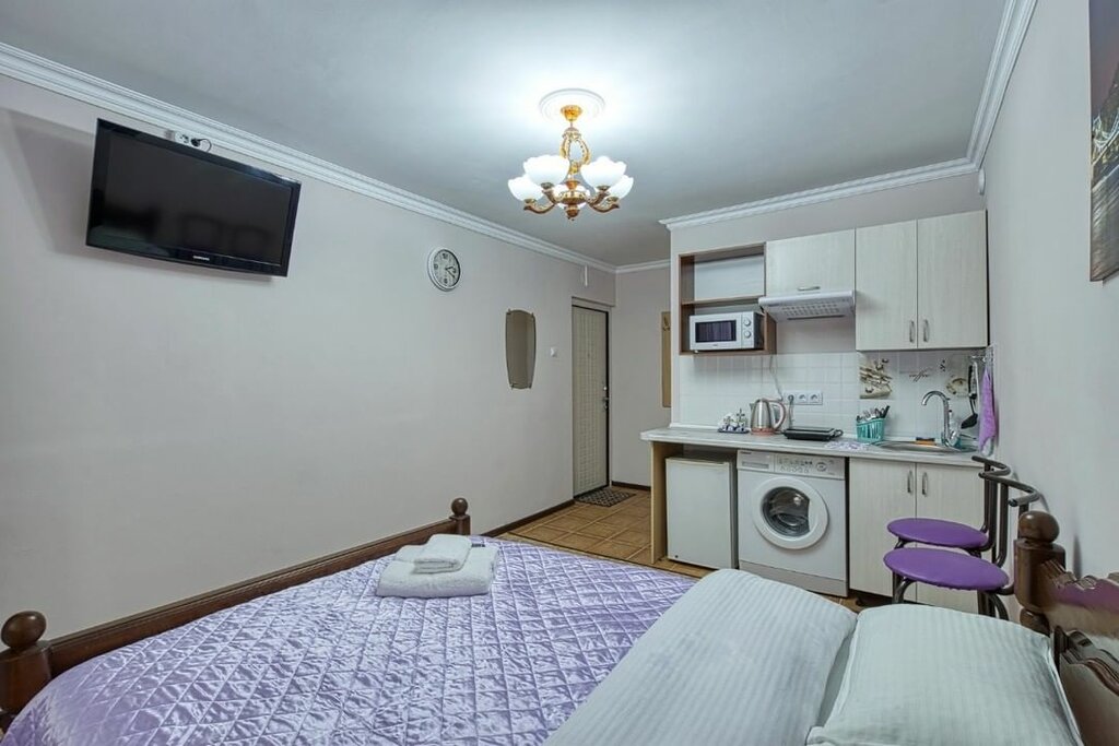 I give 1 star for the opportunity to pay through Sberbank online and the second for the fact that the administrator is in touch even at night. But, as it turned out, there is no sense in this. Due to flight delays, I checked in late. The plan was to come and fall asleep. It turned out that you need to make the bed yourself - okay. When trying to make the bed, I found stains (brown) on the sheet. I wrote to the administrator, he replied that it was varnish! - they hit the door, he says. That's it! He didn't answer my texts or phone calls anymore. And I also called because I also found stains on the duvet cover. This is absolutely unacceptable to me. I went to bed with my clothes on. I paid 2,200rubles for such a wonderful stay. For example, the previous night before staying here, I stayed at the Ibis on Dynamo for 3200rubles. In addition to clean bed linen, there is also drinking water and snacks at the bar (free of charge, as in any self-respecting hotel). You say, so go to the Ibis, so I'll go. Perhaps this accommodation put an end to the daily rent of apartments for me. P.S. The apartment is cold, it is not possible to watch TV, because the remote control does not work.
