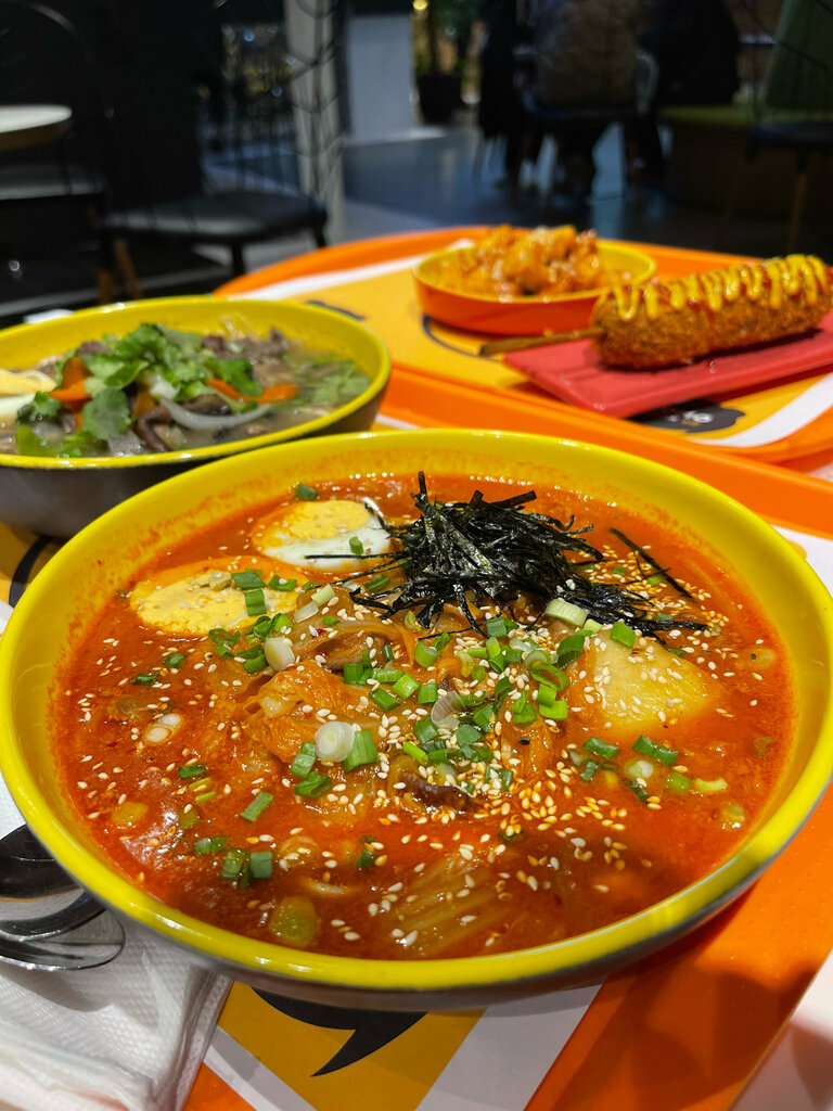 Меню - скудное даже для фаст фуда. Пибимпаб (корейская классика) превратили в сладкий плов с говядиной, супер жирный и неприятный даже по консистенции. Токпоки карбонара - самое ужасное исполнение в мире. Видимо хранят в соусе, чего делать нельзя, и палочки были поданы в виде развалившегося рисового пюре в соусе карбонара. Корн дог - единственный плюс. Больше сюда ни ногой.