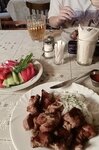 Два дня подряд я ел здесь куриный шашлык и салат. Блюдо подавалось одинаково по вкусу и оформлению. Могу сказать, что у повара есть свой почерк. В первый раз, когда я пришёл, работники у мангала не понимали, что это их рабочее место. Они разговаривали очень громко, крича, и смеялись чрезмерно. Во второй раз, в обеденное время, все стулья были перевернуты и поставлены на столы, а уборщица протирала пол шваброй. В такое время это делать не следует. Для меня подготовили один стол, но женщина проходила с шваброй справа и слева от меня. Это было неприятно. Это место не для отдыха. Неуважение к клиенту на высшем уровне. Больше сюда не приду и не советую.
