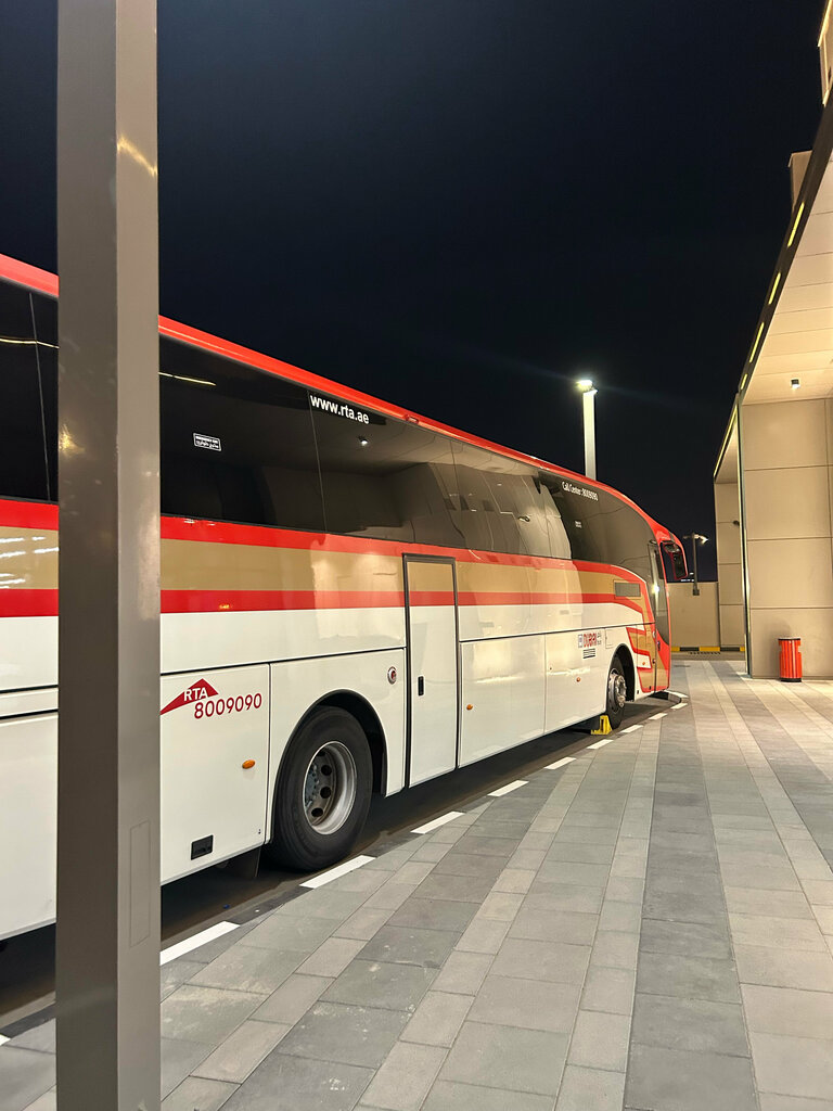 The E700 runs according to schedule, but this is its starting point and it immediately goes along the highway to Dubai, it does not enter Fujairah itself as on the map. So go for a ride to Dubai! At the station you need to buy a 36 dirhams card (30 for one-way fare, 6 card) keep the card, it is both on the subway and on buses! Everything is cool and everything is available. There is no rush on the bus, but it is better not to come side by side, and it is also risky to take the last one.