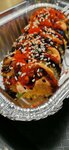 Лапша бататовая, морковь, лук зеленый, соевый соус, масло кунжутное, водоросли нори, кляр.