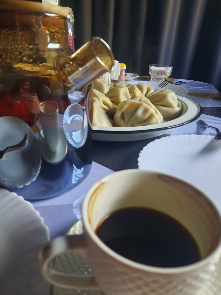 A cozy cafe in the basement. There is a washbasin at the entrance. Fresh renovation. It's a little stuffy, but the food is divine! We ordered Khinkali and cheese pie. Everything is sooo delicious! Tea and coffee are also delicious. The feed is fast. They accept cash and transfer.