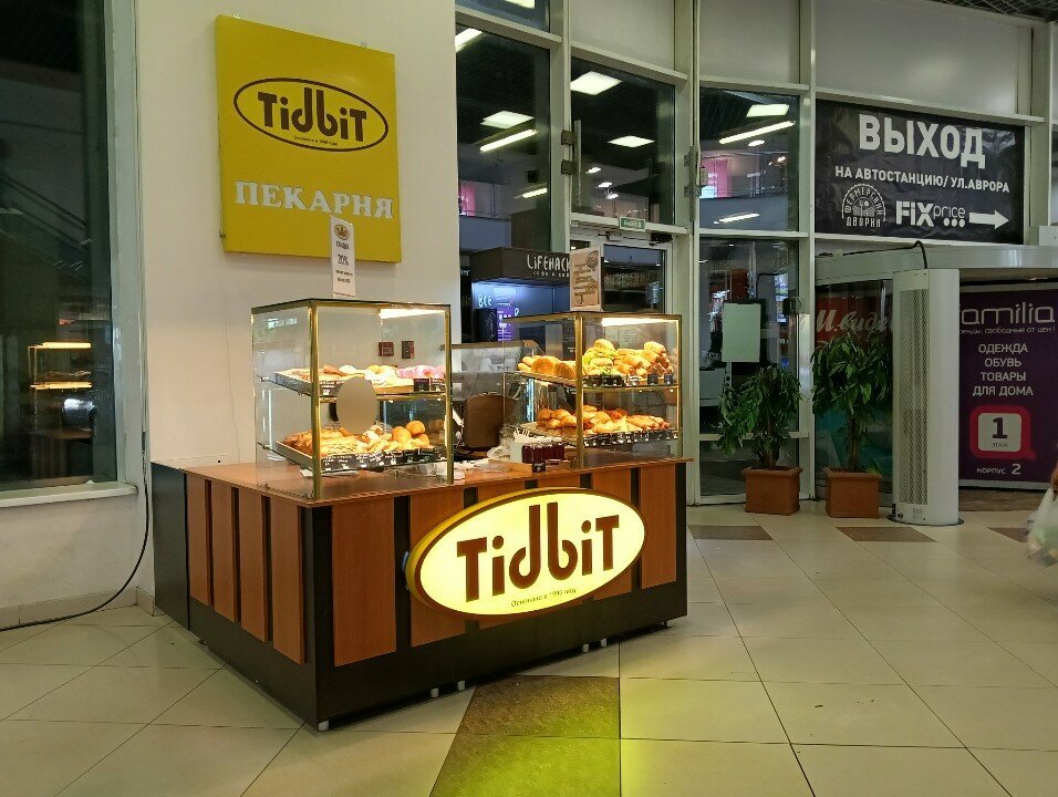 Вполне хорошая пекарня. Выпечка достаточно вкусная. Только непонятно, это возродили старый "Тидбит", что был в городе в нулевых, или же просто выкупили товарный знак и под ним основали сеть пекарен.