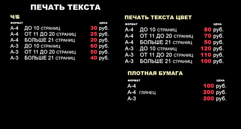 Копирование документов от 20 руб. копия, печать текста Ч/Б от 20 руб. цвет от 50 руб.