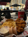 really nice atmosphere, love the design, yummy chicken, juicy and crispy, the sauce is really good
