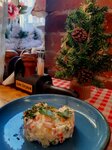 Морозный день, вкусная еда, приятное, ненавязчивое обслуживание официанта Максима, новогодняя атмосфера Заказ делали как из меню бизнес-ланча, так и из основного меню. Салат #Оливье для меня символ Нового года. Приличная порция для бизнес ланча. Вкусно. Салат #цезарь с курицей из основного меню. 10 из 10 по мнению дочери. Порция просто огромная. Римская пицца #пепперони. Много начинки и хрустящие бортики. Картофель фри. Золотист и горяч. Медовик из бизнес-ланча. Многслоен, свеж, пропитан и очень вкусен. Гриссини. Готовили из под ножа. Вкусняшка. Запивали всю эту красоту ароматным, сежезаваренным чаем. Спасибо большое за гостеприимство и ждите снова в гости)