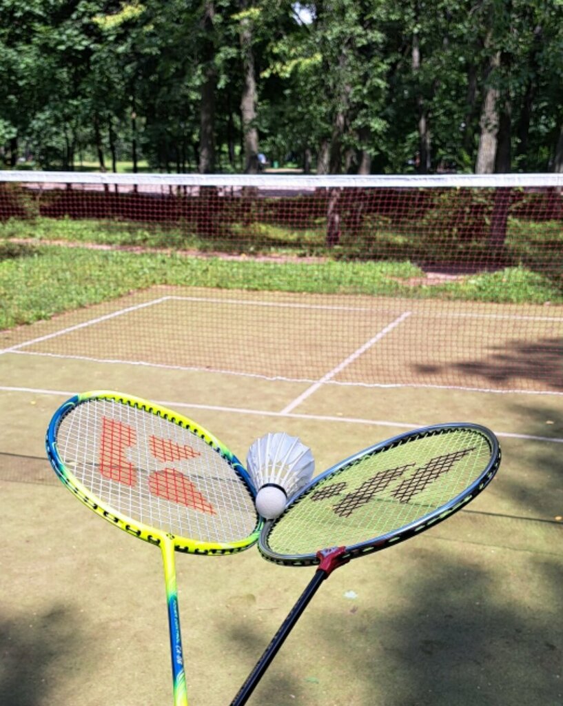 Отличная площадка для бадминтона с покрытием и разметкой. Столбы с крючками для сетки. Деревья далеко, место хорошо закрыто от ветра. Есть и минусы - покрытие после дождя скользкое, разметка короче на 0,6 метра под одиночную игру и нет её совсем под парную.