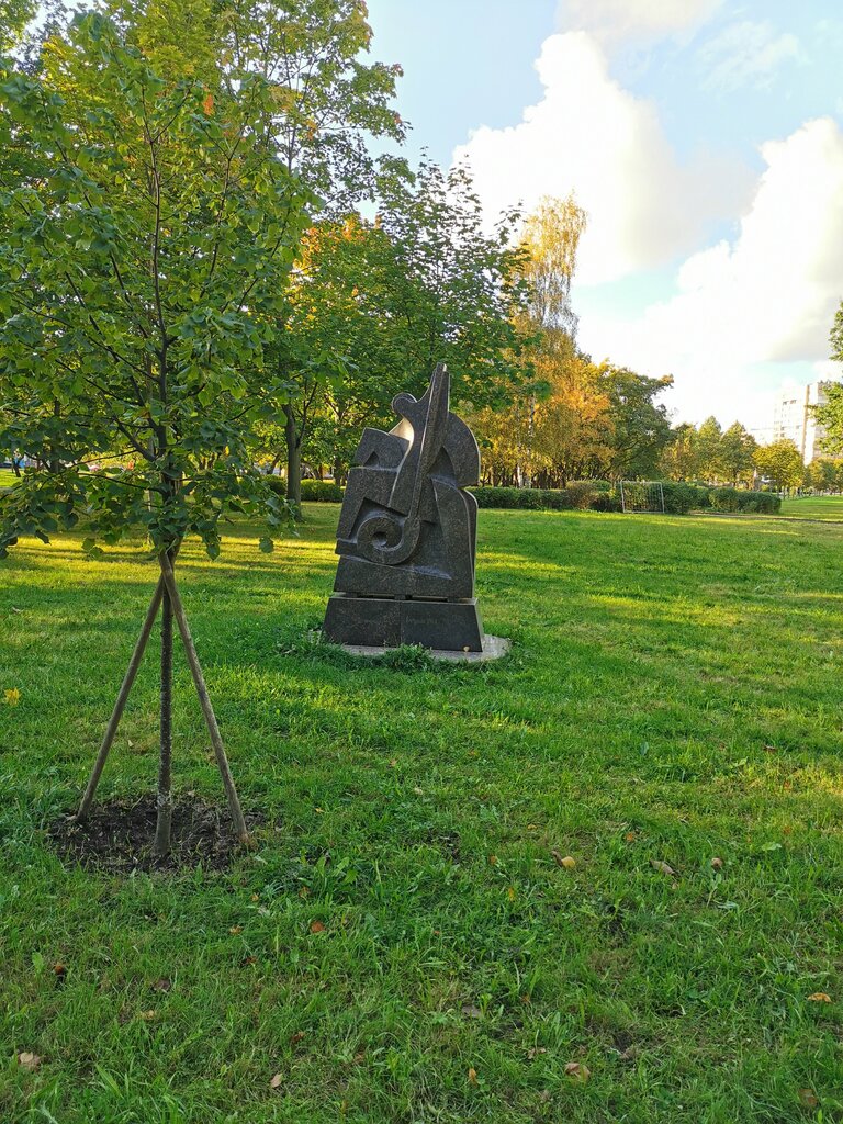 В саду Нева вообще много авангардных скульптур, очень уютное место, сад разбит на несколько зон, много скамеек, приятно провести время