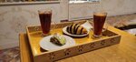 They couldn't taste anything in the cafe, because they came in well-fed, the cafe is very cozy, there are a lot of cakes and beautiful crafts, in general, this is a fabulous place.