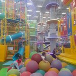 С первых секунд - захватывающее зрелище! Качественная, разнообразная игровая зона, которая занимает ребёнка надолго. Для детей постарше шикарный веревочный парк, где испытания не повторяются и разделены на этажи и секции. Небольшая зона скалодрома, но с достаточно трудными трассами, чтобы не очень просто и интересно их преодолевать. Отдельно боулинг (в билет не входит) Есть скидки для многодетных. Персонал молодой и вежливый. Есть няни для ребёнка, если родителям нужно пойти в другое место. Стильный семейный ресторан. По ценам не сориентирую, ходили обедать в фудкорт, который на этом же этаже.