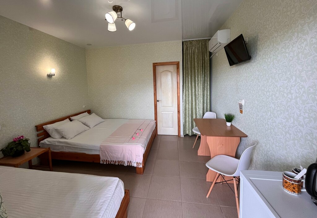 Уютный гостиный дом, с восхитительными номерами, чайником, холодильником, кондиционером и телевизором, хорошие душевые, которые помогали после моря! Спасибо большое работникам отеля за такое райское место! Номера очень хорошие, чистые, удобные, и за недорогую стоимость, приезжайте и выбирайте именно этот гостиный дом! Отдельная благодарность хозяйке за тёплый приём и понимание! Ещё хочется поблагодарить уборщицу, которая очень чисто выполняет свою работу!