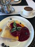 They were found by accident, but they became frequent guests during this vacation. From our numerous company with different taste preferences, everyone could always find something of their own here, because there are quite a lot of different dishes on the menu for every taste! Staff: polite, attentive, pleasant. The service is like in a good restaurant, and this is felt in many ways: starting from the cutlery brought/replaced on time, ending with a friendly look and interest in our impressions of the visit Menu: everything that was taken is very tasty. The portions are large. Cream cheese soup in a bread 10/10 Mushroom cream soup in a bread 10/10 Caesar salad with shrimps 10/10 (huge portion, amazing sauce, large non-rubberized shrimps) Pancakes with cream are delicious!) The BREAKFASTS are very interesting, we took Lounge and English. Everything is very decent! Dumplings with cheese 10/10, very tasty cheese, the dough is correct All types of pastes - 10/10, here they know about the condition of al dente😍 Their homemade lemonades are gorgeous, they put a lot of raspberries in berry, fire in citrus too!) Boats and everything from dough: everything is delicious! Interior: Tables inside the room: pleasant music, clean, interesting design in black and yellow shades, vases with lemons on the tables There is also a terrace with 6 tables, it is also nice to sit there) In general: the restaurant is at the level according to all criteria, once you visit it, you will most likely want to return) No analogues have been found nearby;) Recommend👍🏼