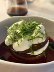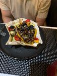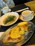 Well, it's definitely not here to eat or eat!!! Everyone is sitting just drinking= coffee, wine, cocktails. There was a total problem with the kitchen!!! There were three of us, two adults and a 7-year-old child, our order: caesar salad for a child, chicken broth, spaghetti carbonara; adult order - two pans with pork salad with crispy eggplant and burrata with tomatoes, and khachapuri boat, I don't write about drinks, drinks and drinks, there were no problems with them. I will make a reservation that at the time of the visit there was neither a lot of sleep, nor anyone waiting for food, but there were only coffee drinkers and other drinks. Yes, I'll make a reservation, the price tag in the institution is not inferior to the Moscow one, and maybe it exceeds it somewhere. Next, I will give the chronology of the dishes being served to us, there were no warnings from the waiter.: 1. Two frying pans after 45 minutes, while in my understanding, the trick of a frying pan is a hot frying pan in which everything was cooked, and here they put several pieces of meat and potatoes on absolutely cold metal, sprinkled with herbs in a rustic way, this is not a frying pan, a fat minus. 2. At the same time, the soup was not brought to the child. He sat and looked at us, and as soon as we ate the "pans" they brought him both soup and carbonara at the same time!!!! While the child eats the soup, what will happen to the carbonara? A brick? Well, why do that? 3. I repeat, we've already eaten hotter, but there haven't been any salads yet!!! An hour and a half later, two salads with eggplant and caesar were served. The eggplants were by no means crispy, and this is the first time I've seen olives and olives in such a salad. 4. By the end of the second hour, a boat was served)))) the burrata never appeared on the table, so the most difficult dish is to cut the tomato and remove the cheese from the package))) This place is definitely not about food, it's so cozy, elegant, but then... you can't take a bottle of wine and drink it from beautiful glasses while looking at passers-by, but no more. Or I'm sorry for the mistakes, but with a score of 7 t.p. for three, everything should be different.