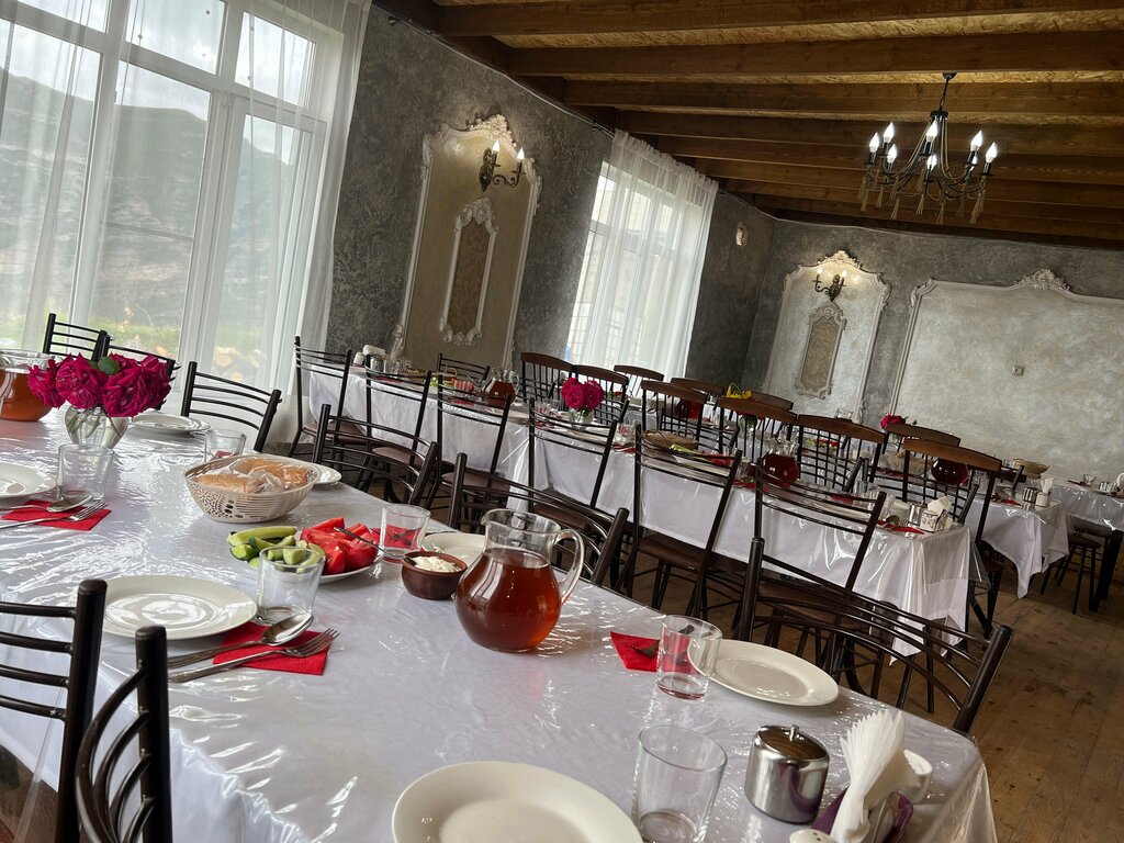 Были 06.07.2025, поднялись на две смотровые локации, одна с видом на Грузию, а потом спустились на язык троллей, большое спасибо Нурмагомеду за профессиональный и аккуратный трансфер людей. Он нас привез в это кафе без опознавательных знаков, это обычный дом. Встретили с душой, что нас удивило, то, что нас пригласили за праздничный стол и принесли нам комплексный обед, в который входило: суп, похожий на логман, овощи, чуду, курзе, большой графин компота, урбеч, бидон сметаны и всё это стоит 650₽ с человека, был ребенок 5 лет, денег с него не взяли, все очень вкусно и очень сытно. 😊 Отдельный привет малышу Нурику. Ставим оценку 5.5 из 5 баллов 👍👍