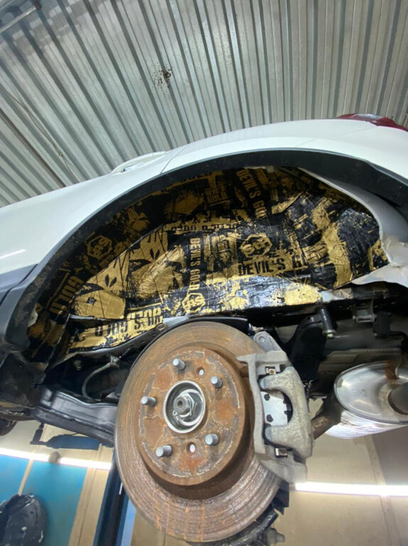 Комплекс шумоизоляции арок: -выставление а/м на подъемнике -демонтаж колес, подкрылков -мойка арок и подкрылков -сушка тепловой пушкой -обработка арки 3мм виброизолятором -обработка составом «АНТИШУМ» -обработка подкрылков 2мм виброизолятором -сборка