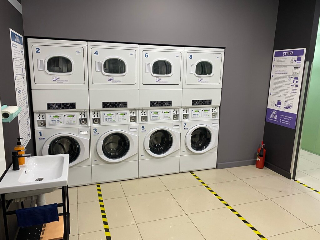 Удобно, когда рядом с домом есть такое место, где можно быстро постирать большие вещи. Стирали шторы, покрывала, наматрасники. Даже после стирки вещи вполне ок и суть влажные, но если хочется прям сухие вещи, то за 45 мин все высушится идеально 🙌🏻 Загрузка большая, стирает и сушит достаточно быстро. Внутри чисто и все есть, оплата картой, инструкции, зона ожидания - спасибо ❤️ Ещё понравились информационные фото не стене, прикольно 😍