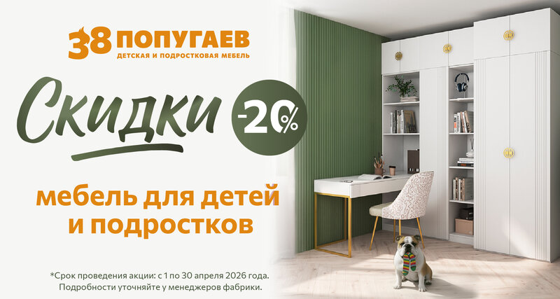 Скидки 20% на мебель для детей и подростков! С 1 по 30 апреля!