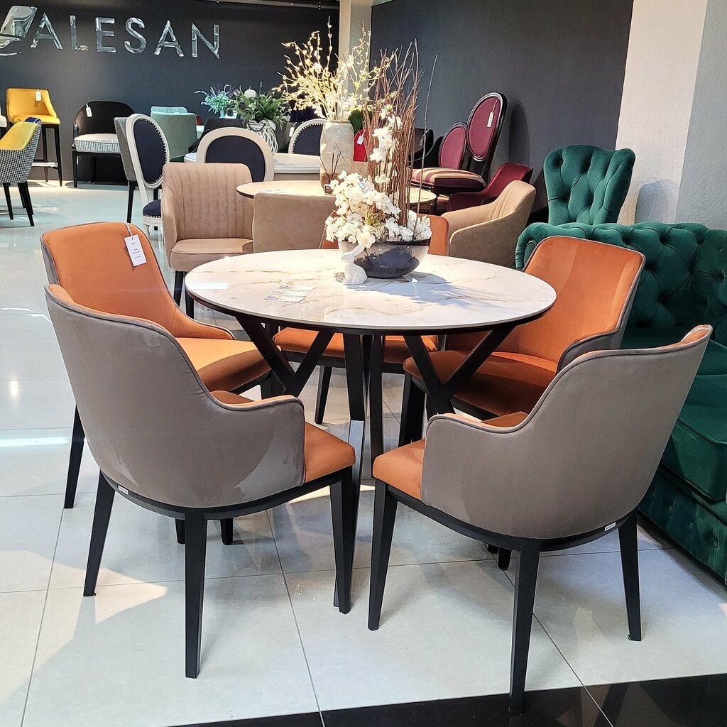 I bought these chairs, they are very beautiful and comfortable. We have been looking for such a model for a long time. The designer put it in the project. The chairs in the kitchen look awesome.The upholstery color is gorgeous. They brought it and lifted it to the floor. Very friendly designer girls in the salon.I recommend