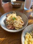 Гречка с пармезаном, беконом и яйцом