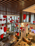 I like the place, there is an indoor hall, a terrace in the fresh air and on the street at the entrance, the location is also convenient, it's best to go there with children, there is a play area, paid, there were 50,000 soums, time is unlimited. Comfortable seating areas, my daughter sleeps on the sofa with special pleasure, very attentive and responsive staff. The service is excellent. The kitchen is delicious, for an amateur, you will not please everyone in everything). Another plus is that the hall is decorated in a holiday theme.