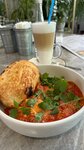 Cappuccino and excellent chicken curry are delicious)). The service is excellent, it is very cozy to sit, the place is perfect for both a family dinner and a meeting with friends.