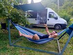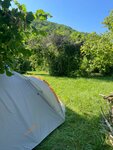 Хорошее место. Отличный дружелюбный хозяин. Добираться удобно и на машине и на общественном транспорте (до остановки автобуса минут 15), при этом тишина, природа. Есть душ, туалет, открытая кухня, мангальная зона, гамаки. Можно взять палатку в аренду, если приехали без своей. Речка рядом, правда она совсем мелкая, но если выйти с территории кемпинга и пройти примерно 1,5 км выше, есть маленький водопад, и в его чаше можно искупаться. Вода там очень чистая, прохладная. До моря тоже недалеко, пляж широкий и немноголюдный.