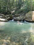 Попали в кемпинг случайно. Ехали в соседний, но чуть чуть промахнулись в темноте) Не смотря на наш поздний приезд, нас встретил радушный хозяин, заселил и показал где что находится. А показать было что) 3 душа с горячей водой. Два чистейших туалета. Веревки под навесом для того чтобы повесить сушиться вещи. Ряд умывальников. Шикарная кухня с холодильниками, плитой посудой и уютными столиками. Даже телевизор. Рядом заботливо разбиты клумбы с цветами) На территории мангальные зоны, гамаки, бассейн. Все это входит в стоимость-400руб с человека и никаких доплат за горячую воду, холодильники и т.д По границе кемпинга горная река, около нее шезлонги. Места под палатки в тени ореховых деревьев, располагаются на достаточно большом расстоянии друг от друга. Утром проснулись и обалдели от красоты. Кемпинг утопает в зелени, вокруг горы. Совсем рядом сероводородный источник и более глубокая горная река. Хотите идите пешком, хотите на авто. Эти природные богатства и красота абсолютно бесплатно и заботливо благоустроены местными жителями. До моря пешком далековато, мы ездили на машине. Но большая часть гостей кемпинга предпочитали прогуляться пешком, говорили идти минут 15. Мы были практически во всех кемпингах на побережье и могу с уверенностью сказать что это лучший из всех.И, однозначно, ему нет равных не только на черноморском побережье! Очень гостеприимный хозяин, влюблен в свое детище, вкладывает в него душу и делает максимально комфортным для отдыхающих. А еще он прекрасный собеседник, позитивный и отзывчивый человек. Пробыли в кемпинге почти два дня и уезжать совсем не хотелось. При нас люди приезжали переночевать, а оставались на несколько дней. Мы тоже пожалели что уже забронировали гостиницу. Огромное спасибо за уют, за теплый прием и массу позитивных эмоций этому месту и его гостеприимному хозяину❤ Будет возможность, обязательно вернемся сами и будем советовать всем друзьям и знакомым. P.S Отдельная благодарность за самый вкусный мед👍😊