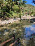 Были с 14 по 18 августа 2023. Если кратко, то можно ехать- все отлично, только нужно хотя бы накануне созвониться, узнать обстановку с местами. Кемпинг молодой-2й сезон. Ещё не вся территория освоена. Территория не маленькая, вся в зелени. Есть места, как под маленькую палатку, так и под полноразмерный кемпер. Своя вода, 2 туалета, 3 душа, 4 умывальника. + кухня с холодильниками. Огромный жирный «+» то, что сразу за территорией кемпинга протекает горная речка, (которая не пересохла даже в жару + 35.) на которой хозяевами сделана запруда с проточной водой, где очень приятно и пережидать пекло. А вот до моря не близко. В пекло не нагуляешься. Зато на машине минут 5-7. Есть парковка. Пляж галечный с удобствами в виде, душа и переодевалок. Море чистое, но глубина начинается метров в 5 от берега.