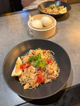 A cozy little cafe with delicious food. We had lunch on the weekend with the family, there were almost no empty tables in the hall, but there were still empty seats on the street. Lo Mein Chinese noodles are listed on the menu as spicy, but it seemed to me that the dish is completely without sharpness. Nevertheless, everything in the order was delicious.