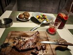 The first time I visited, I tried bon felet steak and tibon. Well, I really liked it. The steak is very soft and juicy (ordered with a medium roast without blood). Orange salad was a completely new taste for me. Here, I've come again, but you can say it again. They served steak tibone, rib eye, and a hot appetizer beef tongue in cream sauce. After trying diligent digestion, I will share my impressions in the next issue.
