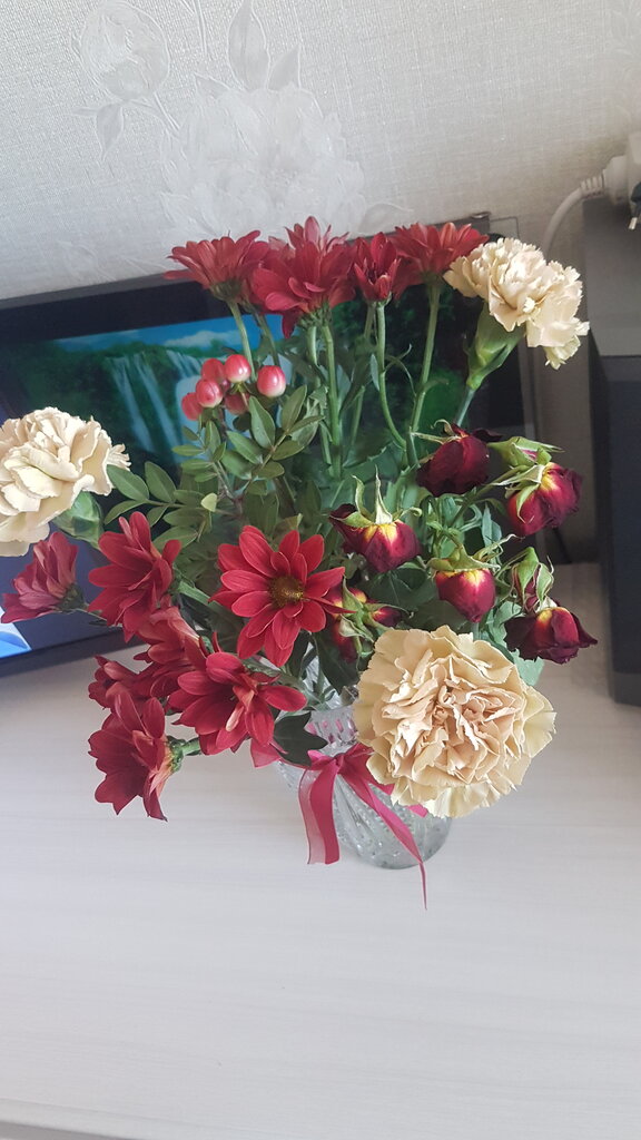 Разочаровало, что в букете кустовая роза была вялая, на следующий день после покупки завяла, а у лилии распустился только 1 цветок, хотя сказали, что распустятся все, если подрезать.