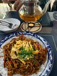 My wife and I checked into the Crystal Plaza hotel next to this place, but they only check in at 2 p.m. and they also said they would only feed me for dinner, so my wife and I searched for a place to eat nearby and chose this place , ordered lagman and chicken kebab , my wife a loin, the food is delicious, ordered freshly squeezed orange juice everything is delicious and the prices are good .