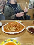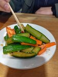 Заказывали битые огурцы, 3 вида пельменей, зеленый чай. Порции по традиции большие (хотя меню обманчиво, там нарисовано мало на блюде:). Цена за такое количество разумная. Из этого всё было огонь, свежее, с пылу с жару, вкусное, тесто тончайшее, внутри много мяса и сока. Бывал и в разных городах Китая и в китайских заведениях в других странах и могу утверждать, что тут 100% оригинальная кухня, приготовленная оригинальными национальными мастерами. Процветания вам!