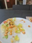 Дворик нормальный, посидеть место есть. Заказывали на днях пиццу цезарь, сок вишневый и картошку фри. Пиццу забрали с собой, разогревали дома, на вкус ужасная, есть не возможно, сок выпили в самом кафе но насыщенности нету и на вкус как разбавлен водой, картошка фри вроде нормальная ребенок съел